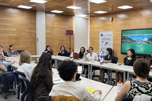 En esta nueva edición, la Academia Sejong profundizó el intercambio académico entre ambos países mediante conferencias, seminarios y talleres centrados en las perspectivas de género, el desarrollo profesional y la representación de las mujeres en la sociedad contemporánea. En la apertura participaron diversas autoridades de la Universidad Central de Chile, entre ellas la directora de Desarrollo Académico, Dra. Francisca Infante Espínola, y la directora de Relaciones Internacionales, Loreta Lancellotti Quezada, junto a académicos/as y representantes de la Alianza de Mujeres en la Academia (AMA). La participación de la Dra. Namhee Kim, académica invitada de Ewha Womans University (Corea del Sur), permitió vincular experiencias y realidades desde un enfoque comparado, en un espacio que promovió la reflexión y el intercambio de conocimientos.