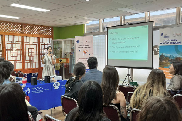 Por su parte, el workshop «Trabajo, amor y matrimonio a través del movimiento 4B en Corea», dirigido a estudiantes del Instituto Rey Sejong y del Magíster en Estudios Coreanos, propuso un espacio participativo de análisis sobre el equilibrio entre la vida profesional y personal de las mujeres coreanas, además de profundizar en las implicancias del trabajo doméstico y las nuevas formas del activismo feminista.