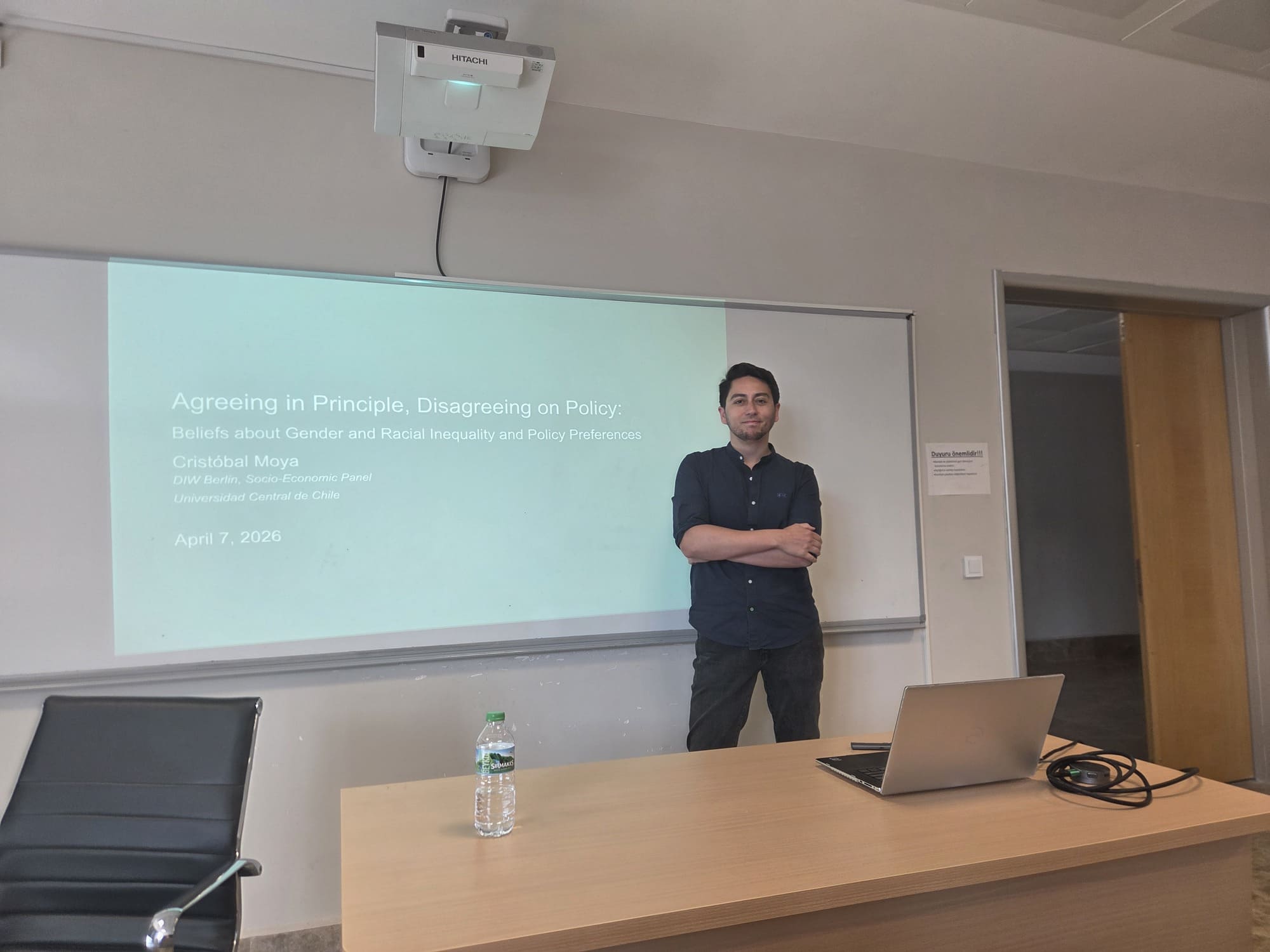 Por una parte, el 7 de abril fue expositor en la serie internacional Sociology Talks del Departamento de Sociología de la Turkish-German University, en Estambul. En la instancia presentó la charla titulada “Agreeing in Principle, Disagreeing on Policy: Beliefs about Gender and Racial Inequality and Policy Preferences”, en la que abordó los mecanismos de generación de desigualdades asociadas a género y raza, así como las percepciones públicas sobre estas problemáticas y su relación con las preferencias de política pública.