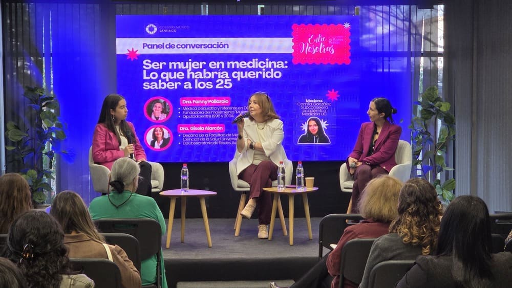 La instancia fue moderada por Camila González, subconsejera académica de la carrera de Medicina de la Pontificia Universidad Católica, quien abrió la conversación con una pregunta que guio el intercambio: qué les habría gustado saber a los 25 años y si habrían tomado las mismas decisiones profesionales. A partir de esta reflexión, la decana Alarcón compartió su trayectoria y aprendizajes acumulados tras más de cuatro décadas de ejercicio profesional.