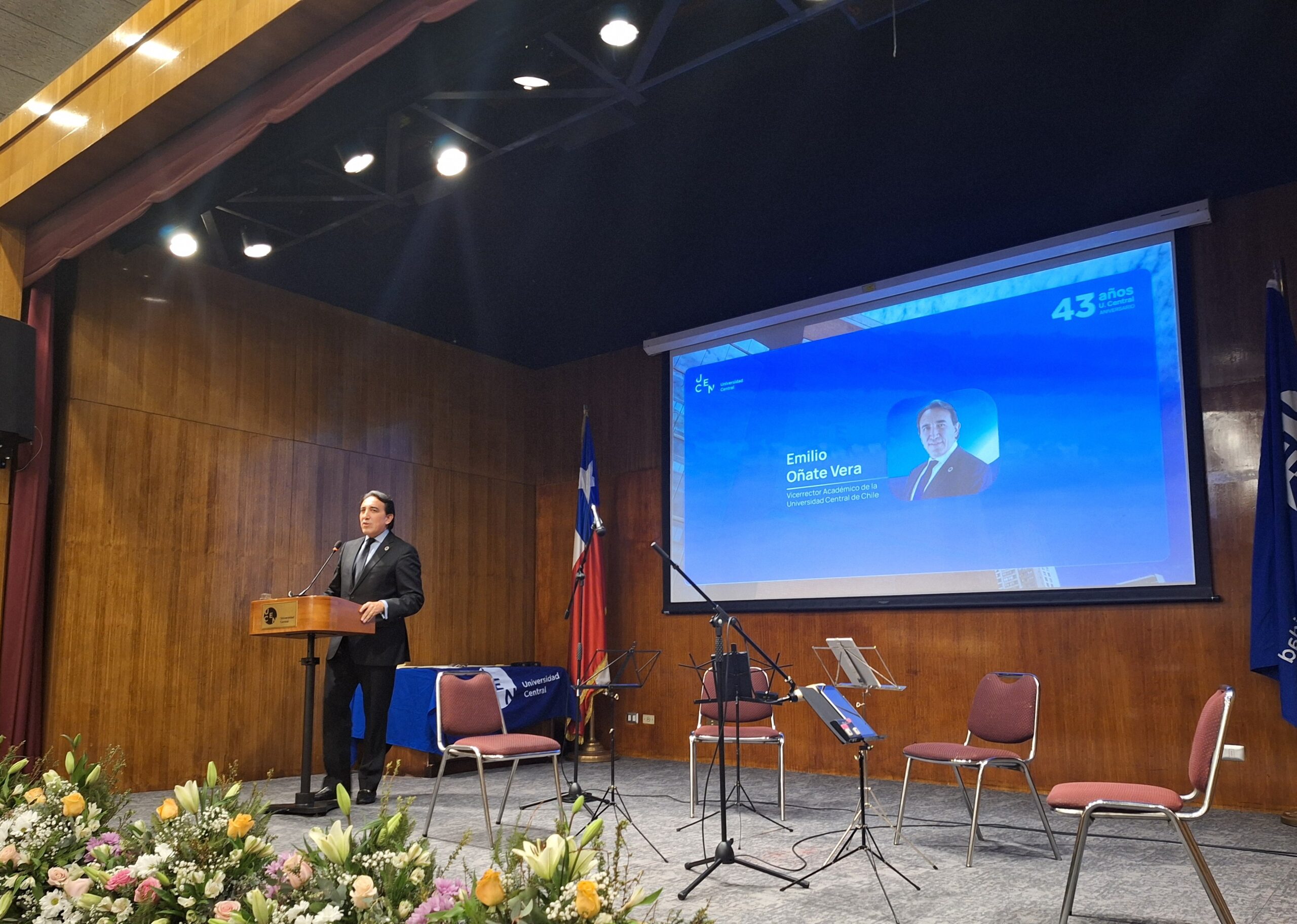 En la oportunidad, el Vicerrector Académico, Emilio Oñate, afirmó que “en esta jornada de celebración queremos distinguir cómo nuestras y nuestros profesores han aportado en la docencia, en la investigación y, en la vinculación con el medio, y cómo nuestros estudiantes han destacado en su proceso formativo. Quiero darles las gracias por el trabajo realizado y decirles que estamos muy contentos de que formen parte de esta comunidad de la Universidad Central”, señaló.