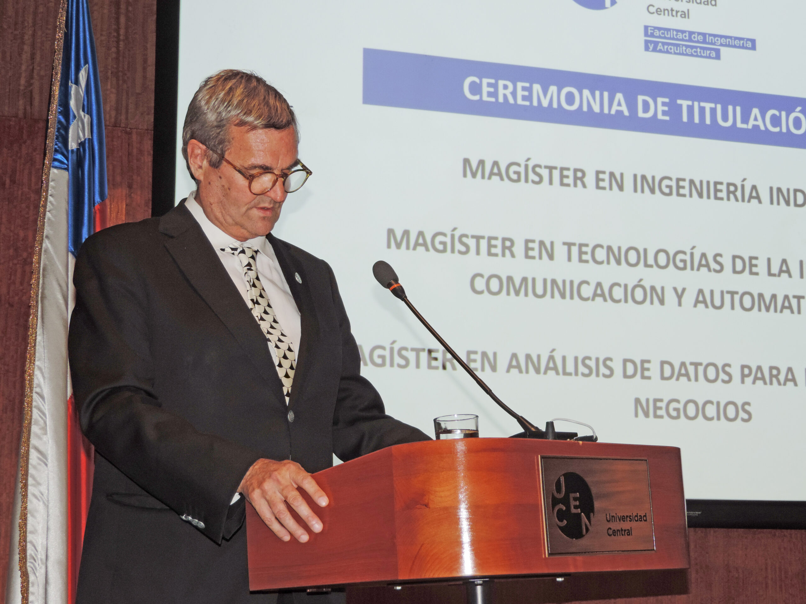 En el Aula Magna de la Universidad Central se realizó, el martes 16 de diciembre, la ceremonia de titulación de la Facultad de Ingeniería y Arquitectura, instancia en la que egresaron los programas de Magíster en Ingeniería Industrial, Magíster en Tecnologías de la Información, Comunicación y Automatización, y Magíster en Análisis de Datos para la Inteligencia de Negocios.