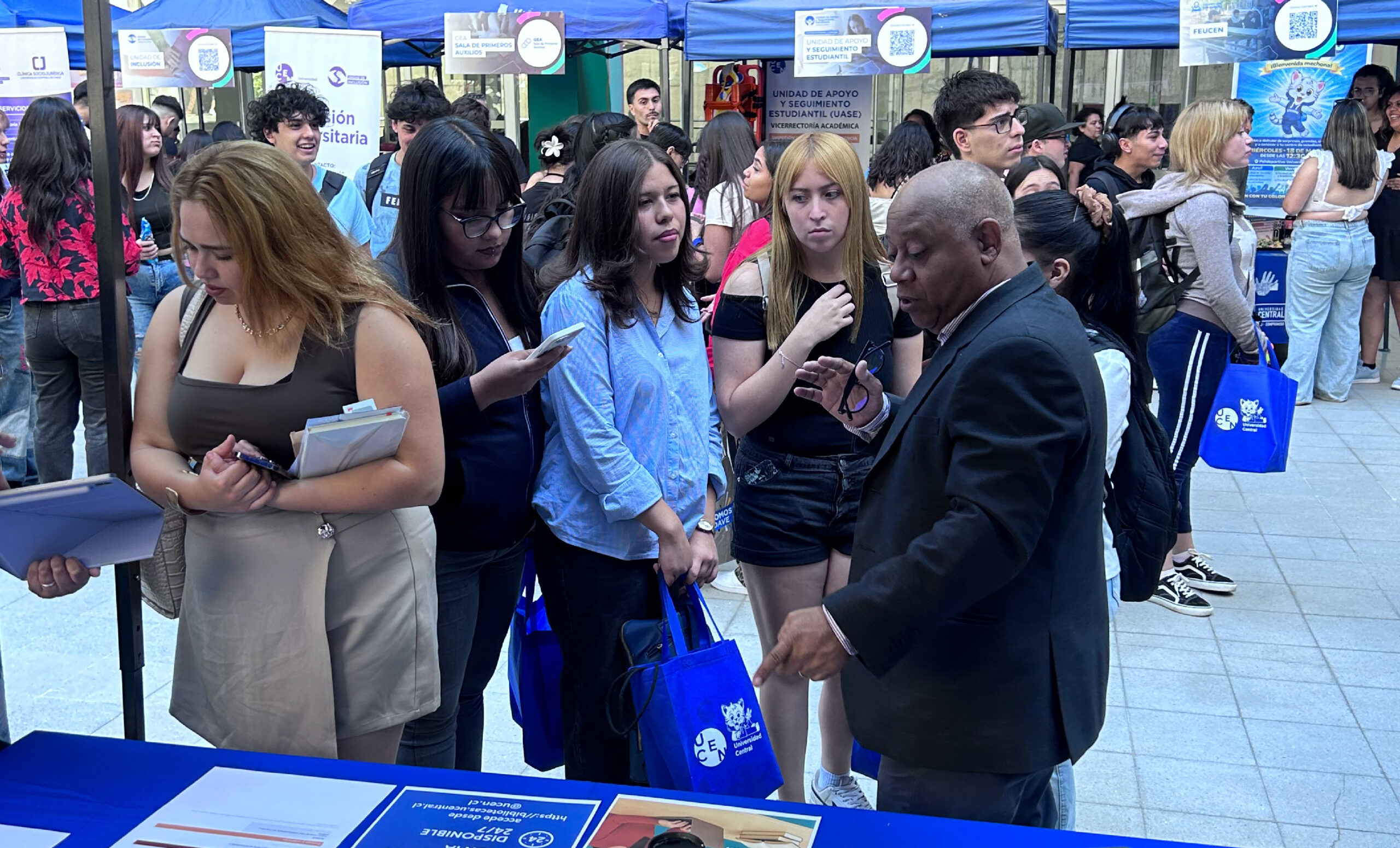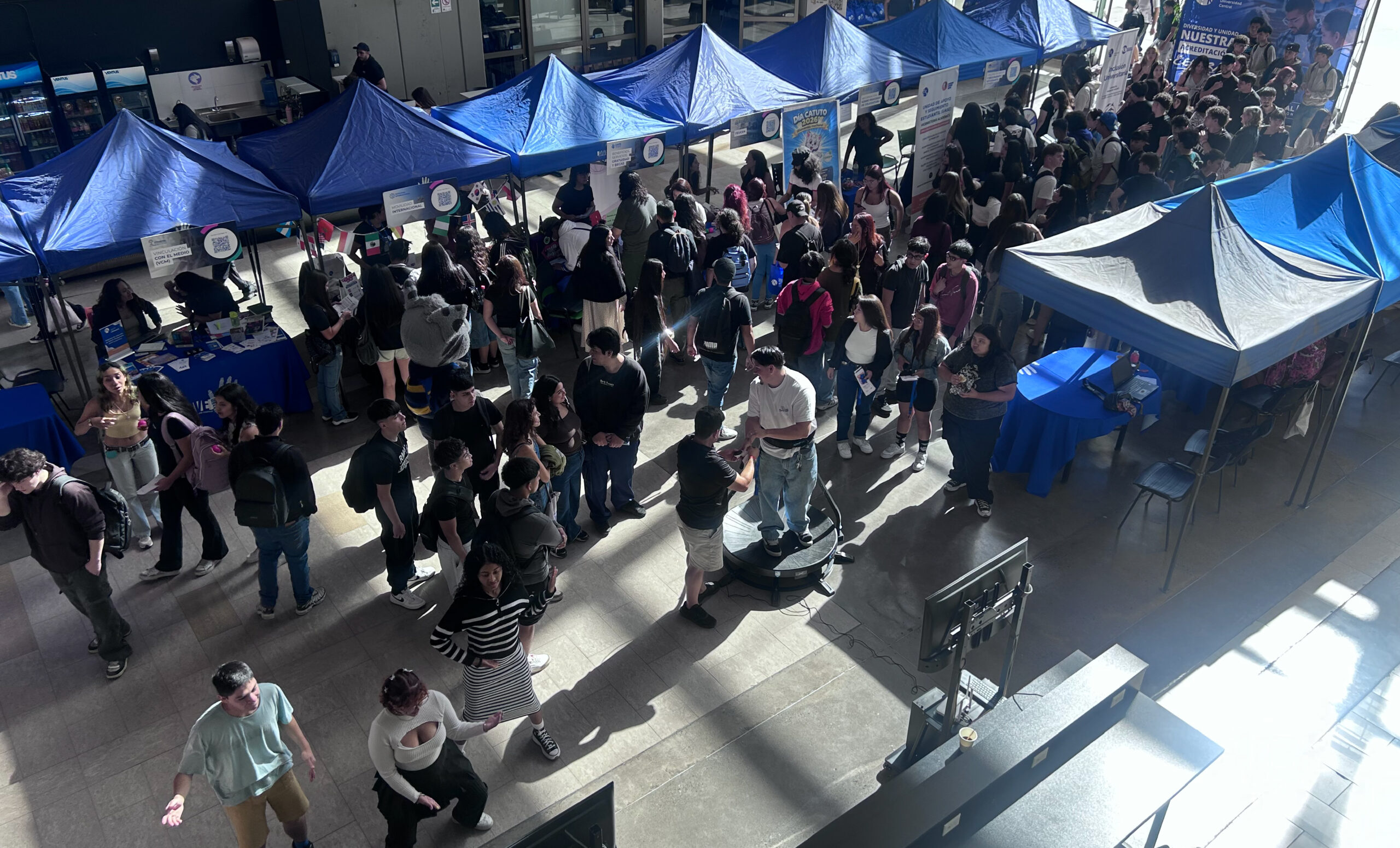 Más de 1.000 estudiantes participaron en la Feria de Bienvenida para estudiantes nuevos/as, coordinada por la Dirección de Apoyo y Vida Estudiantil (DAVE) de la Universidad Central de Chile. La actividad se realizó el miércoles 11 de marzo en el campus Gonzalo Hernández Uribe y el jueves 12 de marzo en el Hall Central del VKII, como un espacio de información y acompañamiento sobre los distintos servicios, beneficios y áreas de apoyo disponibles para la comunidad estudiantil.