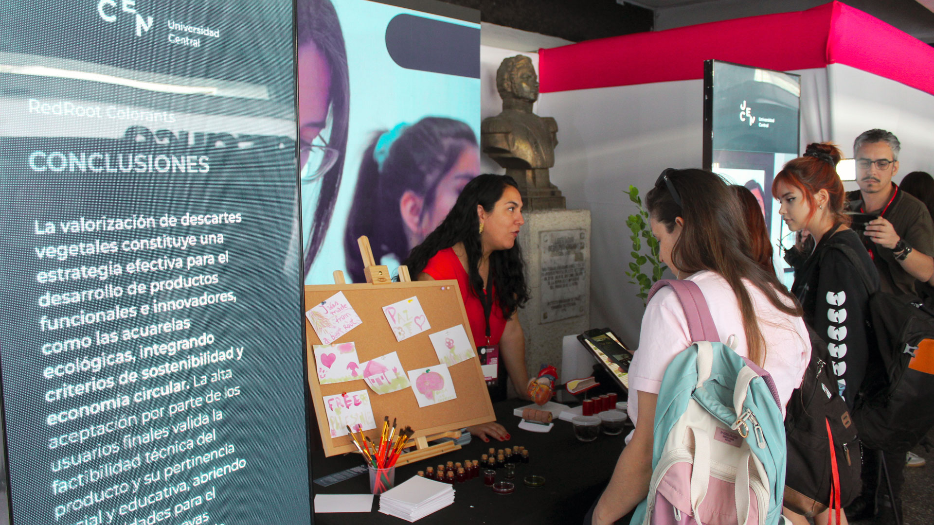 La innovación aplicada a la salud y a la creación artística a partir de descartes alimentarios marcó el inicio de la participación de la Universidad Central de Chile en el Congreso Futuro, con la presentación del proyecto «RedRoot Colorants» durante la primera jornada del evento, realizada este lunes 12 de enero, en el estand institucional.