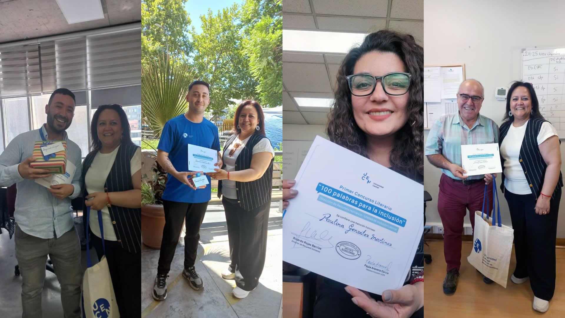 En cien palabras cabe un mundo. Y este 3 de diciembre, Día Internacional de las Personas con Discapacidad, seis mundos escritos por trabajadores y trabajadoras de la Universidad Central de Chile recordaron que la inclusión es una forma de estar con otros. La Unidad de Inclusión Laboral de la Dirección de Recursos Humanos —perteneciente a la Vicerrectoría de Administración y Finanzas (VRAF)— entregó ese día los premios de la primera versión del concurso «100 palabras para la inclusión», iniciativa que contó con el auspicio del Comité de Vida Académica y Fomento de las Humanidades y las Artes, de la Honorable Junta Directiva.